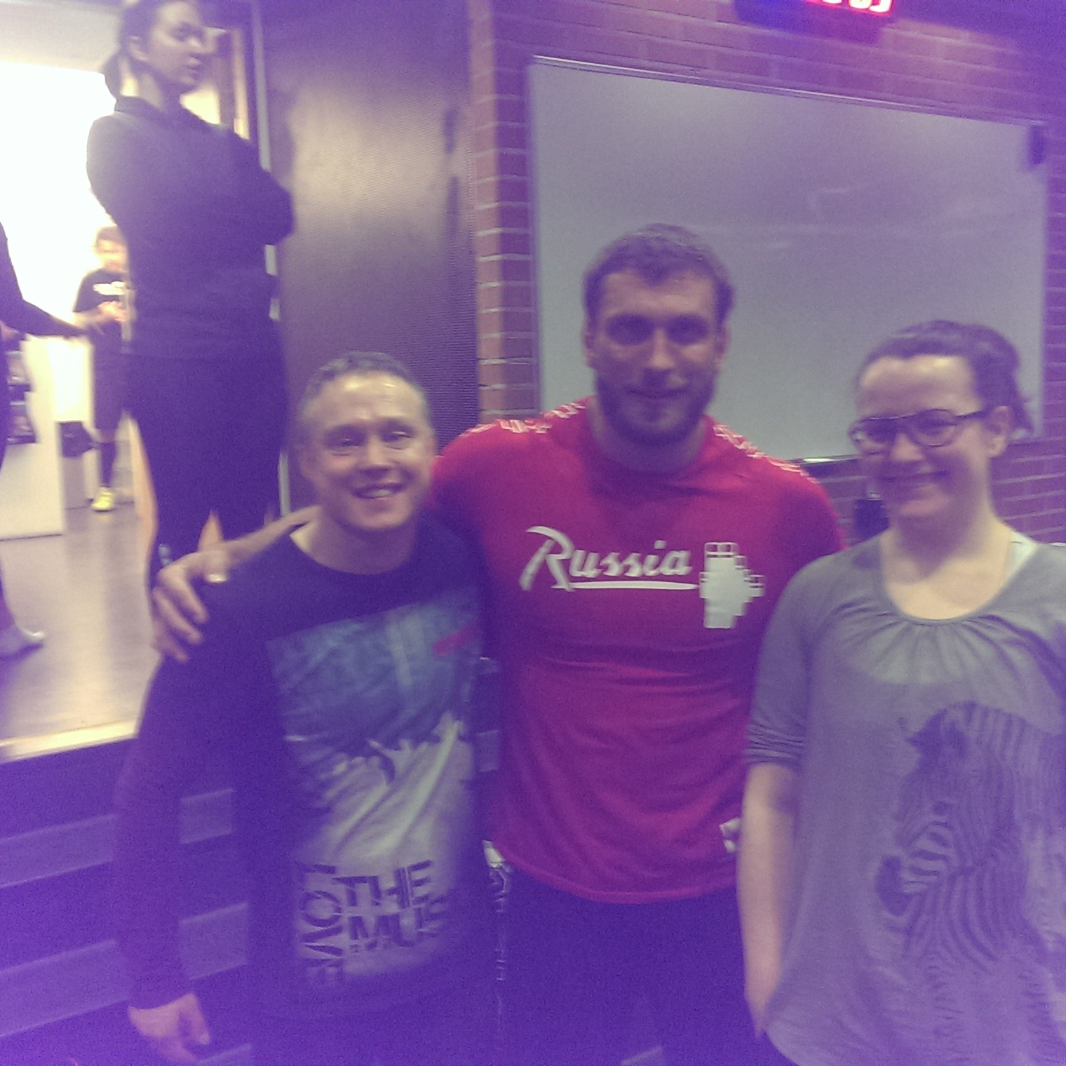 Alla Punttipossujen molemmat valmentajat yhteiskuvassa Dmitry Klokovin kanssa: